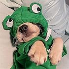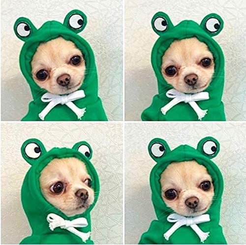 Pet frog sweater-This dog clothes design a frog shape on the head, let your dog/cats look more cutely after wearing it, and soft material provides warmth to your pet in the winter or a low-temperature room in summer