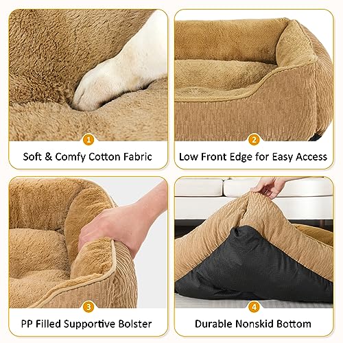 【Durable – Fully Filled Dog Bed】Pet bed is fully filled with high-quality PP cotton in every corner, this makes the dog bed durable and strong, and less prone to deformation and breakage. Surface plush fabric warm and friendly, effectively retaining pet body heat and providing a comfortable sleeping for dogs.