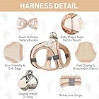 NO PULL, NO CHOKE, STEP IN: The double fixing method of hook and loop fastener and buckle, the sturdy double D ring provides you with two choices of traction for safer pet walks. its vest-like design distributes the pressure of the leash evenly across the chest and shoulders to prevent choking or neck strain. 1) Put the pet’s front legs in the step-in harness. 2) Lift the small pet harness and lock the buckle. 3) Adjust the chest size and clip leash on the D ring.
