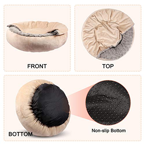 ❤CHOOSE SIZE: GASUR 2 in 1 covered pet bed comes with an attached blanket hood a donut shape. We suggest the small bed (23×23”) for dogs and cats up to 20lbs, and the medium bed (26×26”) for pets up to 30lbs.