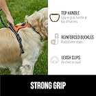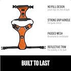 DUAL LEASH ATTACHMENTS AND TOP HANDLE: harness features 2 leash clips on chest and back; leash clip at the chest of the harness helps reduce pulling and tugging; attachment at the back of the harness for relaxed walks; quick control handle at top of harness for added control