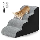 HAITRAL 4 Tiers Dog Steps Durable Pet Stairs,High Density Foam Dog Ladder Ramp for Bed or Couch,Non-Slip Dog Stairs for Short Leg Dogs,Older/Injured Pets,with Lint Roller 2 Refills Gray/Black