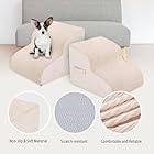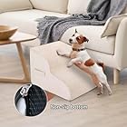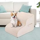 High Density Foam Dog Stairs Steps, 13.7’’ Non-Slip Extra Wide Deep Pet Steps for Beds Or Couches, for Injured or Older Pets Dogs and Cats with Joint Pain, 2-Tiers (Beige)