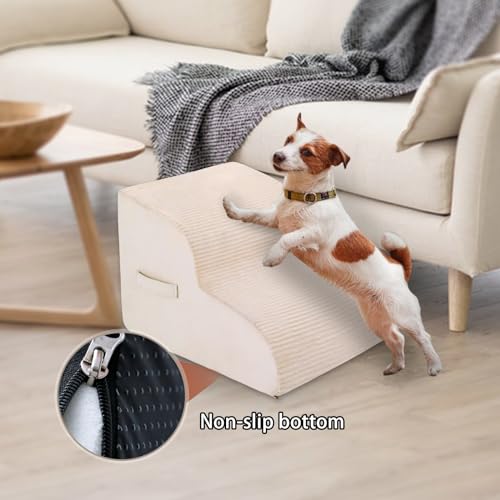 [ Double Sided Anti Slip Design ] — The dog steps cover is made of corduroy, surface horizontal stripe design, is more frictional than other covers, pets will not slip on the stairs. The anti-skid rubber bottom to keep the pet stairs from sliding.