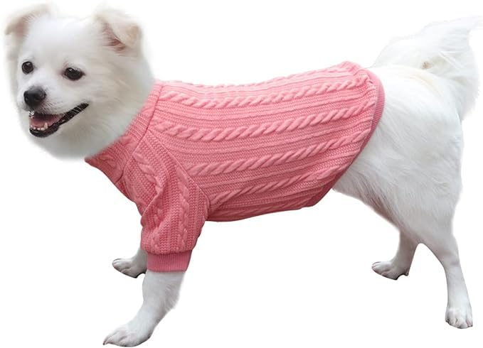 The dog turtleneck pullover is made of high-density polyester that is comfortable, smooth, warm and easy to care for. Warm Knit Sweater for Pets Features a classic cable pattern, ribbed cuffs and hem, the cable knit sweater is an adorable winter outfit for your dog; solid colors offer endless fashion, blue and pink are cute for both boys and girls . Turtleneck and full belly wrap pullover that completely wraps around your pet’s neck, chest and belly for a snug fit and warmth. HIGH STRETCH FOR COMFORTABLE FIT – This crochet sweater has high stretch for a comfortable fit. Your pet will love getting through the cold winter months in the knitted jumper. The cute and warm knitted sweater is best for small dogs, such as Chihuahua, Bulldog, Dachshund, Pug, Shih Tzu, Jack Russell Terrier, Welsh Corgi and more. [Before purchasing, please refer to the size chart and measure the size of your puppy in advance to obtain a better shopping experience. I wish you a happy shopping~]