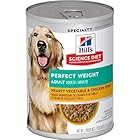 Helping your grown dog keep a healthy weight doesn’t have to be difficult. Hill’s Science Diet Adult Perfect Weight Hearty Vegetable & Chicken Stew is breakthrough weight management nutrition with clinically proven technology for healthy weight maintenance and long-lasting weight support in your adult dog. Over 70% of dogs lost weight within 10 weeks when fed this dog food made with natural ingredients. This premium canine recipe is also a great source of high-quality protein to support lean muscle in your dog. There’s more to love with the new look of Science Diet. Some of our products also have new names, new kibble shapes & new formulas. Not recommended for puppies and pregnant or nursing dogs. Feeding Guide: 1.Adjust feeding amounts as necessary to maintain optimal weight. If you are unsure, ask your veterinarian. 2.New to this food? Mix increasing amounts of your pet’s new food with decreasing amounts of the old food over a 7-day period. 3.Keep fresh water available at all times! 4.Your pets nutritional needs may change as they age. Ask your vet at every checkup. 5.To prevent suffocation, keep the packaging out of the reach of pets and children.