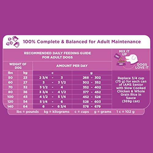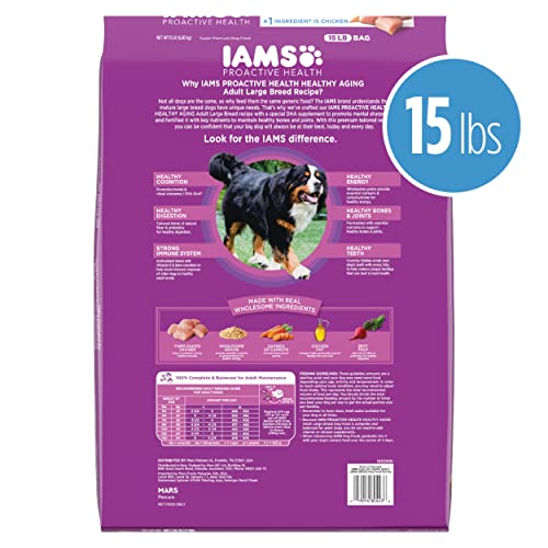 Your large breed senior dog is one-of-a-kind… that’s why IAMS makes healthy aging dog food that’s just as unique as they are. IAMS Healthy Aging Adult Large Breed Dry Dog Food with Real Chicken was created to meet the specific wellness and nutritional needs of your older big dog. With real, farm-raised chicken as the first ingredient, this dry dog food is formulated to support healthy bones and joint health in canines with a balance of key nutrients formulated for large breed senior dogs. A blend of fiber and prebiotics promotes healthy digestion. Plus, the tasty dog kibble supports a strong immune system with antioxidants for optimal health. When you feed your mature large dog IAMS dry food, you can feel good knowing they’re getting the nutrition they need to bring out their unique best.