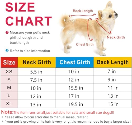 【NOTICE】:–The item runs small,,just suitable for cats and small size dogs!!!Please don’t choose size according to your usual size.Please measure your pet’s Back Length,Chest Girth,and refer to Size Information before you buy.If your pet is growing,please choose 1-2 size up.