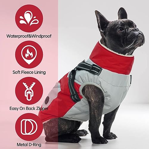 IECOii Dog Jackets for Medium Dogs Waterproof -Red,Medium- Dog Coats for Dogs with Harness,Waterproof Dog Sweaters for Medium Dogs Boys Girls,Dog Clothes Schnauzer Pug Jack Russel Boston Terrier
