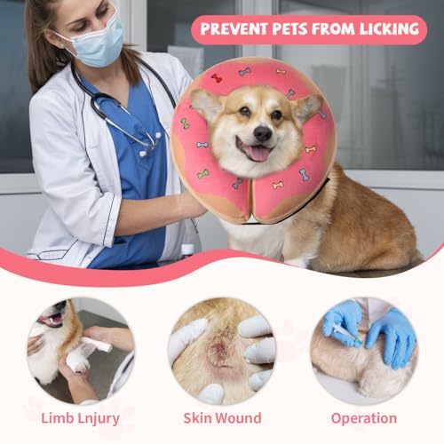 CUTE PATTERN: Unlike most solid colored inflatable collars, this inflatable dount collar has a cute bone pattern on its surface, which can be used as a cute decoration for your pet dog, helping your pet to have a more enjoyable recovery journey