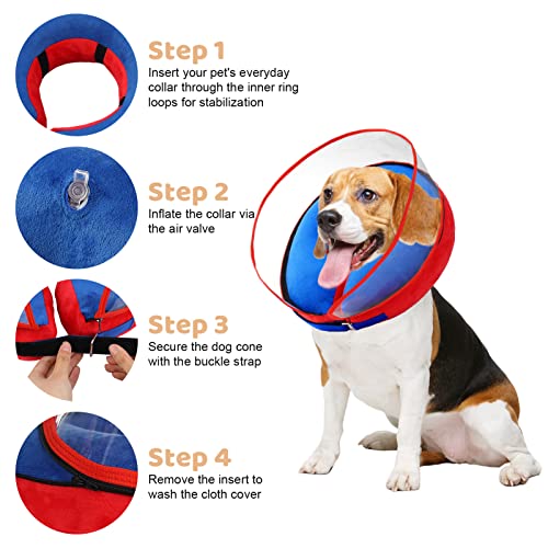 Adjustable and Easy to Store:This inflatable dog collar has an adjustable strap, you can easily adjust it to the right position for a comfortable fit and prevent the dog cone from falling, and the inflatable recovery collar is very convenient to deflate and store for saving space.