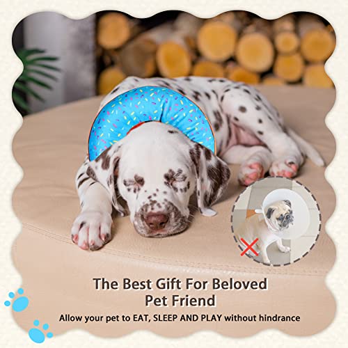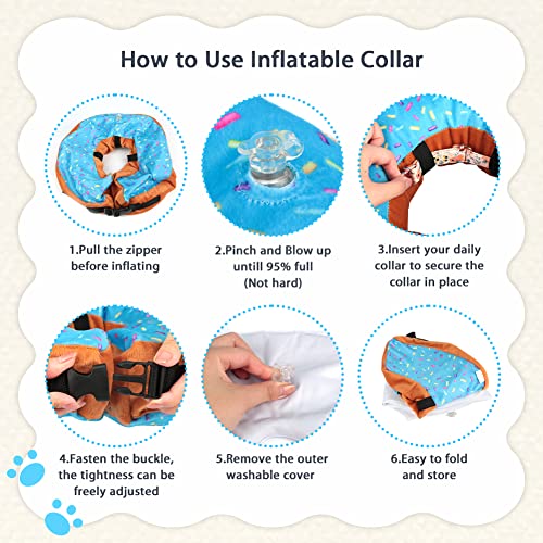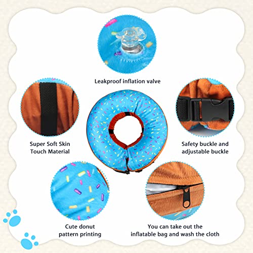 SOFT AND COMFORTABLE MATERIAL:Dog neck donut is made from comfortable and breathable skin-friendly material cotton fabric.The soft surface material and inflatable interior design allows your pets to wear comfortably without affecting their normal life.They can still eat,drink,sleep and play normally without obstructing their sight.