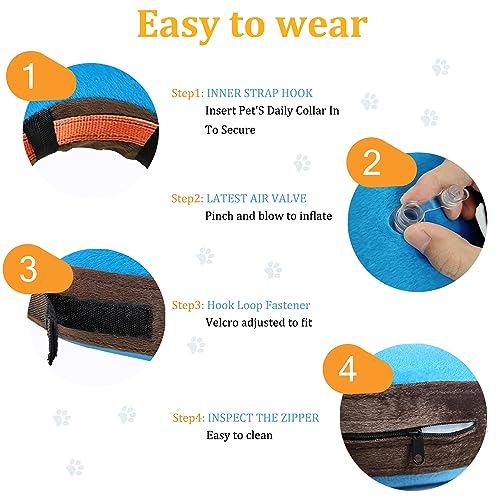 🐶EASY TO STORE & DURABLE: After inflation, the air holes can be hidden in the donut for dogs after surgery to prevent pets from biting and leaking air. Easy to deflate and store; Rear zipper, the outer cover is removable for easy cleaning.[ Tip: Before using the cone for dogs to stop licking, please help your pet cut their nails to prevent them from scratching the inflatable dog collar ]