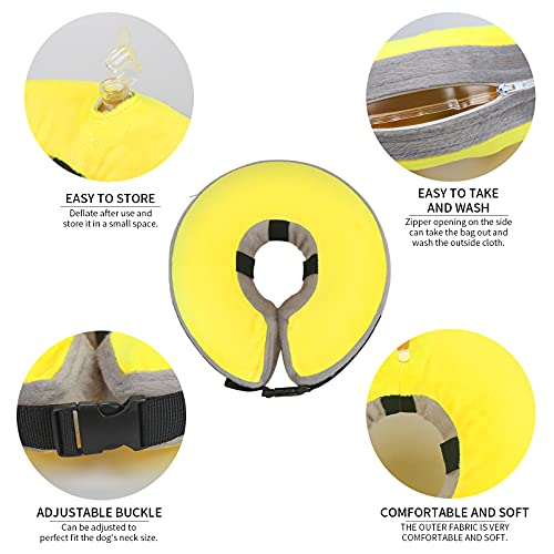 ADJUSTABLE STRAP AND EASY TO STORE:A soft recovery collar uses an adjustable strap to connect, which is more durable and stable. Adjust it for a perfect size for your dog. Move the buckle strap to the back of the pet’s neck to avoid the dog biting it. The inflatable donut design allows you to deflate it so you can store it when you are not using it. There is a zipper opening on one side, so you can take the bag out and wash the outside cloth.
