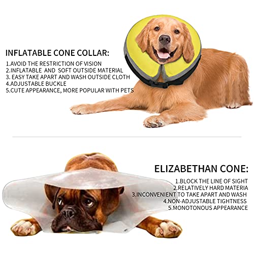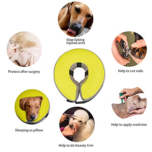 SCRATCH AND BITE RESISTANT:MCHY inflatable dog cone collar is designed to protect your pets from injuries, rashes, and post-surgery wounds. The inflatable dog cone will prevent pets from biting and licking their injured area or surgical site, promoting recovery from surgery or wounds. The soft dog recovery collar allows your pet to eat, drink, and sleep normally, which is beneficial for recovery.