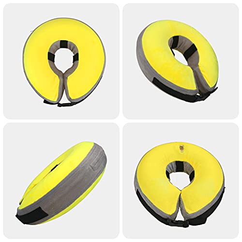 COMFORTABLE DESIGN:MCHY inflatable recovery collar is a soft, plush alternative to traditional pet cones. The outside of the dog cone is made of comfortable and breathable cotton fabric, so pet hair won’t stay on it. The inside is made of environmental PVC material, making it very easy to clean.