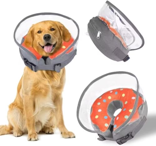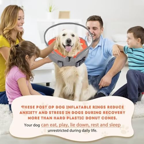HELP YOUR DOG RECOVER – Our inflatable dog cone helps in quick recovery. dog cone collar Since our dog donut collar helps keep your dog’s head and neck in place, it effectively blocks access to the wound during recovery, speeding up healing. dog cone collar medium dog cone. It also helps to reduce dependence on drugs.dog cone collar