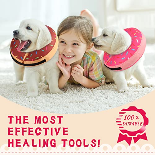 【ADJUSTBALE & EASY TO STORE】~Our imported Velcro supports neck circumference adjustment to achieve the most suitable condition for dogs and is very easy to store because it is inflatable. To better fit the neck of the dog to the inflatable cone, we suggest that link the dog’s daily collar to the dog surgery cone through the three elastic belts on the inside of the inflatable cone.