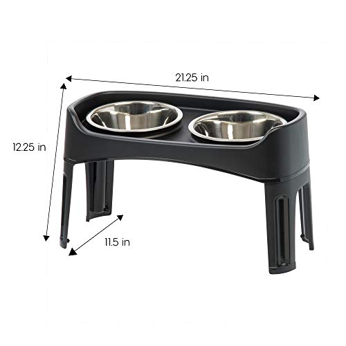 Keep your pooch’s digestive track healthy with this large elevated feeder. Sturdy plastic legs raise the eating height, reducing neck strain and making it easier for your pet to digest their food. Two stainless steel Feeding bowls are ideally sized for food and water, and fit securely into the top of the dog feeder. Raised edges help prevent flying scraps from going all over the place, meaning less cleanup for you. It’s a win-win.