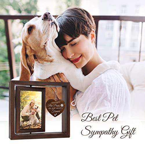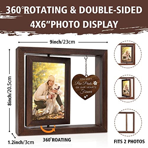 【Heartfelt tribute to your pet】Our Dog Memorial Picture Frame is a natural wooden frame that holds a 4×6 inch photo and can display different happy moments with its unique double-sided rotating design.