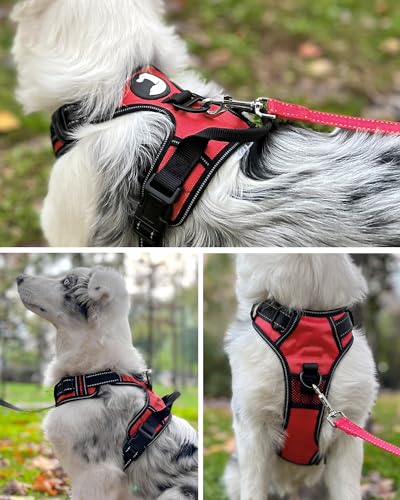 EASY TO USE & ADJUST – Great for growing and mixed breeds. Easy on and off the dog harness in seconds with 2 quick-release buckles without hassle. 4 adjustment points (2 Shoulder & 2 Chest) allow a custom fit with maximum adjustability without choking and slipping out