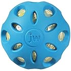 The JW Pet Company Crackle Ball provides endless crackling and chewing fun for dogs. The recyclable plastic bottle material inside the Crackle Ball gives a satisfying crunch as dogs chew. The ball is made of non-toxic, natural rubber with a patented seamless design for extra durability. The rubber material and outer holes around the ball provide better grip for dogs when playing fetch. The Crackle Ball is safe and gentle on dogs mouth, with no caps or rings on the plastic bottle. The ball is available in three sizes, small, medium and large, in order to accommodate all types of dogs. The assorted bright colors provide increased visibility for pets and pet parents.