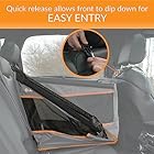 SAFETY FIRST: Front and back straps loop around headrests and included lead attaches to any standard car seat belt to securely tethers to dog harness