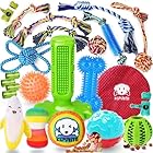 Dog Toy & Super Fun: 23 Pack pet toys for dogs, great for puppy and small dogs. Includes 8 rope dog toys, 2 dog treat balls, 1 rubber dog toothbrush stick, 1 banana dog toy, 2 squeaky plush toys, 2 rubber toys, 1flying magic mat dog toy and 4 extra dog bag rolls & 2 bag dispensers as a gift. You are not merely buying puppy toys, but helping him stays happy and healthy.