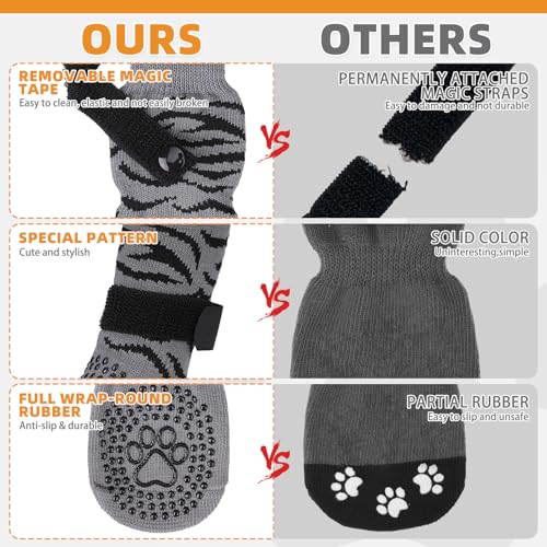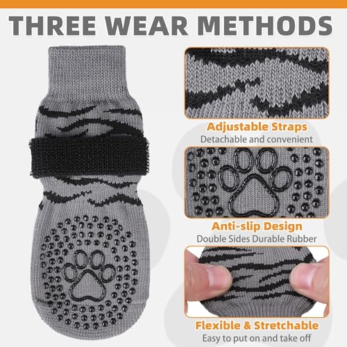 Double Sided Anti Slip – Each side of the sock has the grip, which provides additional traction when your dog walks on a smooth floor. Even if the socks are twisted, they can still work. In addition, the design of the double-sided grip ensures a longer lifespan of the socks. When the grip on one side is worn and has no anti slip effect, it can cause the dog to wear on the other side, exerting a new anti slip effect.