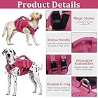 đăSafe & Protective Dog life VestăThe top of the dog life vest has a safety handle that can help the dog out of danger the fastest in case of danger.The biggest role of the life safe vest is assist the dog to swim, reduce the amount of movement of the hind legs, protect your pet’s hind leg hip joint.