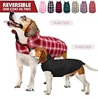 Reversible Dog Clothes: Double sided wearing dog winter jacket provides different styles for your choice. Plaid side makes your dog/cat stylish at Christmas, plain side can be as waterproof clothing. And this dog apparel is machine washable, anti-wrinkle, not easy to deform.