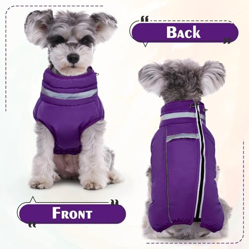 BACK ZIPPER — Easy to Wear and Take Off : The dog snow coat has a zipper on the back, walk-in coat, easy to put on and off. Built-in D-ring for attaching the carrier. The padding in the dog coat prevents the dog’s fur from being accidentally zipped up. There is an elastic band on the belly to ensure comfort if your dog has a slightly thicker belly.