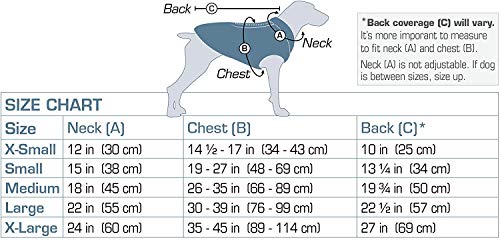 SIZE & FIT: X-Large fits dogs with 24″ neck, 35-45″ chest, & 27″ back; Please measure dog around widest part of chest & lower neck; back coverage will vary; If dog is in between sizes, size up for more coverage