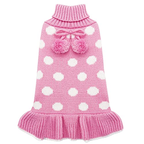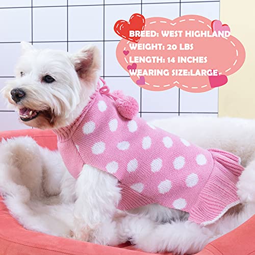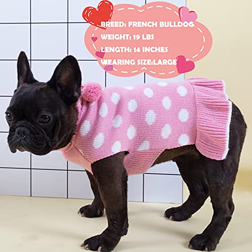 【Leading the Fashion】No one can say no to Polkadot ! KYEESE dog sweater dress, matching with pom pom ball on the back, more cute and elegant. Always ready for any occasions, daily activities, photoshooting.