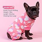 Dog pajamas pink in loving heart printing, is made of soft stretchable velvet, very comfy to wear. Pullover design dog pjs, easy to put on and off.