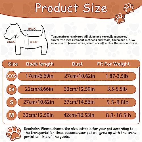 ❄ Fashion Style ❄ SIZE:X-Small- Neck Girth:7.87″, Chest Girth:11.81″, Back Length:7.87″, Suggest weight 2.2-4.4 lbs. Our dog turtleneck pajamas only suitablefro Small Dog breed, such as Teacup dogs, Chihuahua & Yorkie.so our sizes are much smaller than other common pet clothes, please measure your pet and refer to the size chart before purchase.