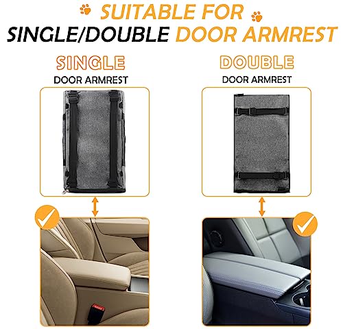🚗Single/Double Door Armrest Applicable: Dog booster seat adjustable buckle design, simply fix the seat belt buckle in the seat top, adjust the strap to the most suitable length. Upgrade design with 2 pairs of straps to meet a variety of types of center console, applicable to the single-door armrest and double-door armrest. Come with detailed picture installation instructions to save your time.