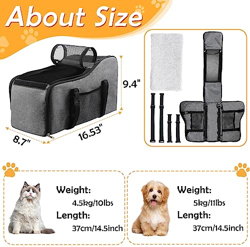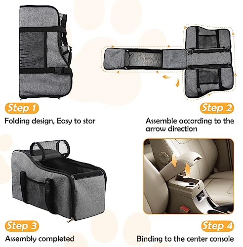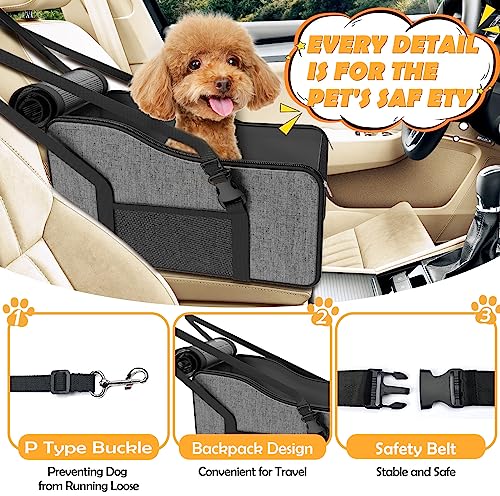 🐶Safety Design: Dog car seats for small dogs adopt upgraded two adjustable seat belts with lock buckles, console dog car seat can be installed in just a few moments. built-in traction rope to help prevent pet from running around, all designed for a safer and more comfortable journey.