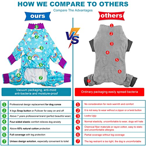 INNOVATIVE DESIGN PROTECTION – Dinosaur Decoration Crew Neck Design: This cute large dog jammies with starlight rainbow wild horse prints design. The collar adopts a lovely petal design, and the four-leg cuffs are designed with micro-puff sleeves. Very suitable for dogs as pjs or party wear. Without a doubt, your Dog will definitely become the most eye-catching one.