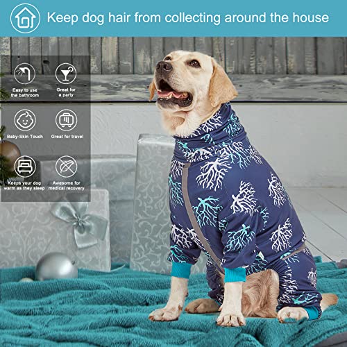 LovinPet Boxer Dogs Onesie Pajamas – UV Protection&Wound Care, Anxiety Relief, Lightweight Stretchy Fabric, Reflective Stripe, Coral Tree Print, Post Surgery Clothes, Pet PJ’s/XL