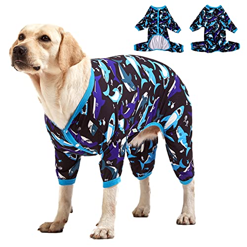 [Perfect For Big Dog Breeds]: L size Big dog onesies is suitable for short-haired large dog breeds, such as Pitbull, Bulldog, Boxer, Labrador, Golden Retriever, Huskie, Alaska, etc. Choose lovinpet to make our furry partner more outstanding!Wearing it makes your pet looks beautiful, lovely.[Multi-Functions]: Lovinpet big dog onesies for large dogs has the functions of UV protection & reducing hair loss, anxiety relief and keep him/her warm at night in all seasons, Especially when attending parties or during holidays, will making your dog be the most eye-catching one.Our dog pjs can also be used as Protective Dog Recovery Suit.