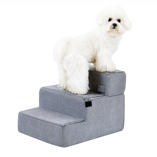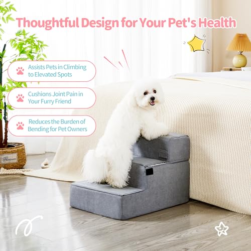 Pet-Friendly Design: The dog stair is crafted with mattress-grade cushioning foam, which helps pets with mobility challenges or joint issues reach their favorite spots, effectively reduces pressure on paws and joints to ensure their comfort and well-being