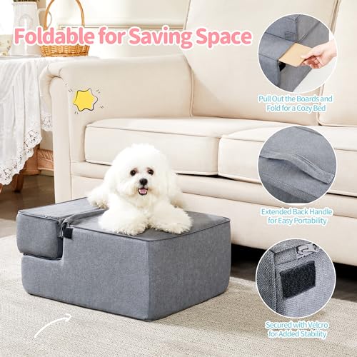 Premium Foam Construction: This portable puppy ramp features lightweight high-density foam for easy moving, insert the solid board to ensure sturdiness and stability. The non-slip bottom adds extra traction and safety for small to medium-sized pets