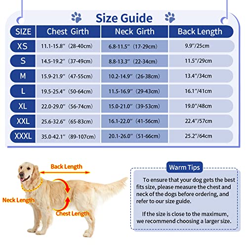 【Multi Sizes and Colors】Our winter dog coat is available in five sizes and two colors to fits for nearly small, medium, and large breed dogs, Such as Teddy, Beagle, Poodle, Bulldog, Labrador, Golden Retriever, etc. If measure close to the maximum, we recommend the larger size for a comfortable fit on your dog!