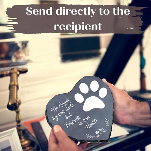 STURDY & WEATHERPROOF: Our pet memorial stones are designed with elegance and longevity in mind. Each piece is handcrafted from slate and chiseled with imperfect edges to be unique. Additionally, we use the latest printing technology to utilize direct thermal to permanently infuse the artwork into the surface of the stone, making it a heartfelt memorial gift and a beautiful keepsake.