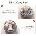 【Provide better sleep】2 in 1 covered pet bed comes with an attached pet blanket, the round shape design and raised edges provide a good sense of security and head support is also more suitable for pets who love to curl up. Providing a calming, anxiety-relieving space which offering joint and muscle pain relief. Help pets relax and sleep soundly.