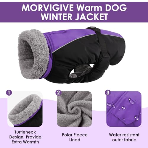 【Extremely Warm Fleece Ling & Water Resistant Fabric】MORVIGIVE Dog Winter Jacket is made of outer layer water-resistant and inner layer thick fleece fabric, soft and comfortable, can effectively keep your dog warm and dry in chilly days. We highly recommend you measure your pet precisely to ensure the dog jacket fits well.