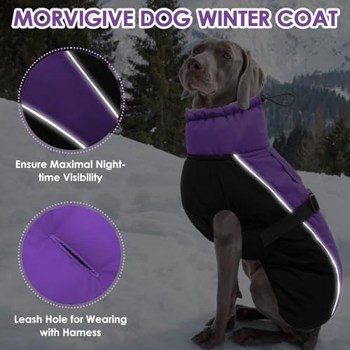 MORVIGIVE Dog Cold Weather Coats, Waterproof Dog Coat with harness Hole Warm Turtleneck Dog Snow suit