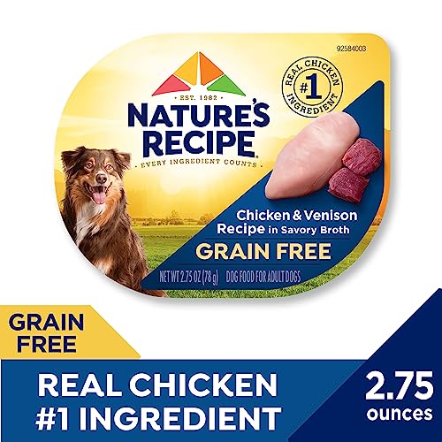 Help your dog live life to the fullest with purposeful nutrition. Nature’s Recipe Grain Free Chicken & Venison Recipe in Savory Broth wet dog food includes natural ingredients with added vitamins, minerals and nutrients, and real chicken as the number one ingredient. This wag-worthy recipe was purposefully formulated by expert pet nutritionists who believe that every ingredient counts. That means this wet dog food contains no added corn, wheat or soy, no poultry by-products, and no artificial flavors or preservatives. So, peel back the lid and fuel the wag with a tasty meal that provides all your dog needs, and nothing they don’t.
