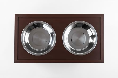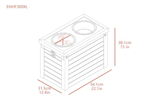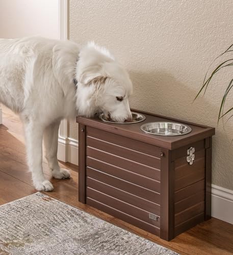 Diner + Storage = efficient use of space. A spot for food, water and extra space to store treats or excess food inside. Ergonomically designed for a correct feeding position, which is perfect for taller dogs. Includes two 32oz. stainless steel bowls and sealed storage bag that fits up to 25 lbs of dry food. ECOFLEX® is a proprietary formula that incorporates reclaimed wood and plastic into the material that allows the product to be eco-friendly and a great value as it will outlast most other products. ECOFLEX® is 100% non toxic and does not absorb moisture. There is nothing in ECOFLEX® that could harm your pets. Easy to clean with a damp cloth. Easy no tools assembly.